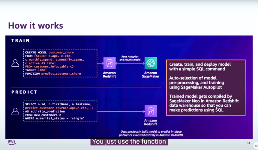 Harness the power of federated querying into various data sources enabling you to share data consistently within organizations, build streaming ingestion and pipeline mechanisms for real time analytics and create, train, and build machine learning models right within your analytics architecture for predictive insights out of all your data.